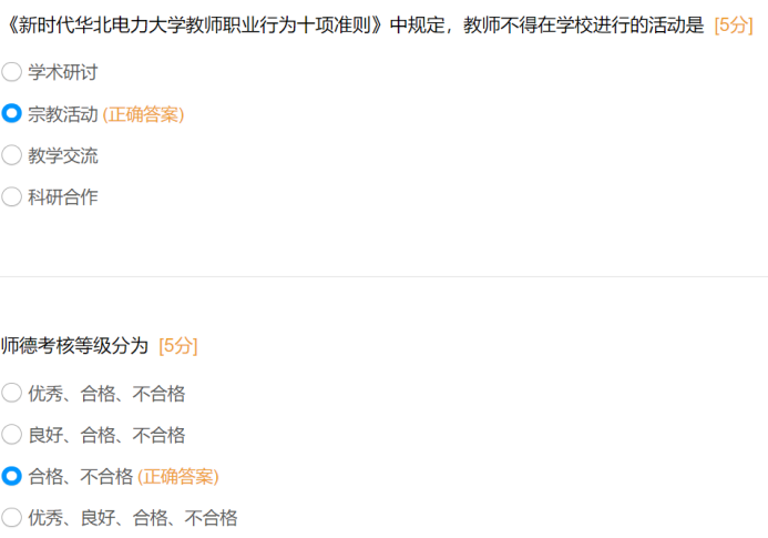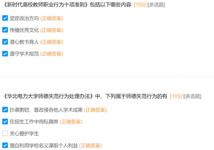 此次知识问答聚焦师德师风核心要求,题目内容紧密围绕《新时代高校教师职业行为十项准则》《新时代高校教师职业行为“十不准”》及《6776永利集团师德失范行为处理办法》等文件,涵盖教师职业行为红线、师德失范行为认定与处理、师德考核等级与程序、廉洁自律要求等核心模块,全面检验教师对师德师风规范的掌握程度。通过问卷反馈来看学院大部分教师对师德的基本准则和行为底线有着较为清晰的认识,在日常教学和工作中能够自觉遵守相关规定。