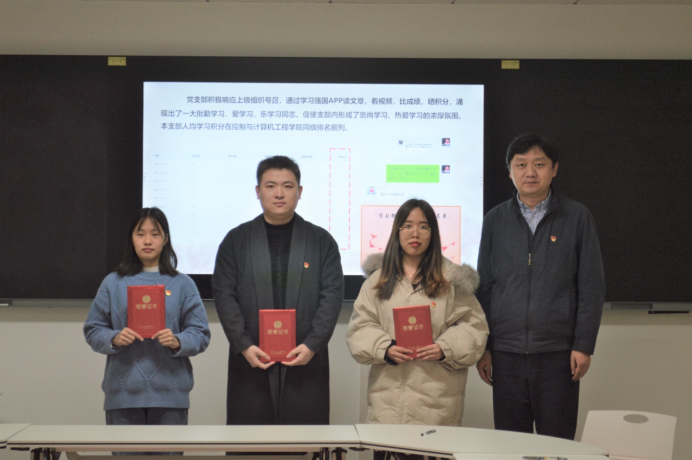 随后,党支部书记王永越同志主持了“学习强国”学习标兵表彰大会。大会回顾了本学期研控计2032党支部开展的8次学党史、学系列讲话的学习教育活动。并对“学习强国”学习标兵邓锴奂、符贵梅、肖楠三位同志予以表彰。