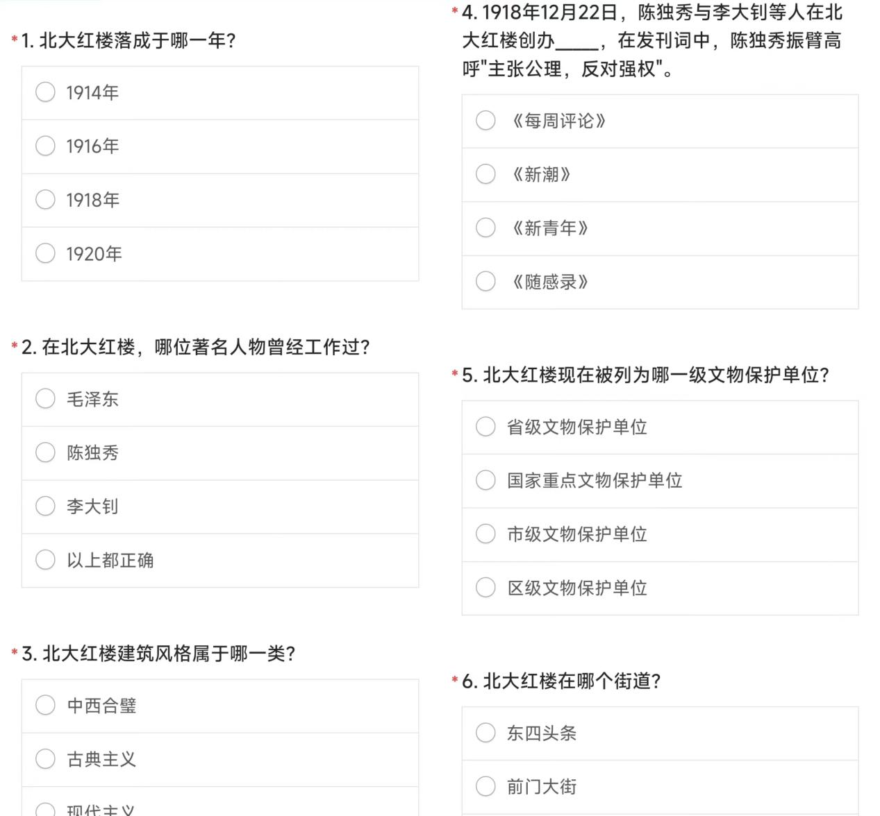 在参观的结束后,老师们积极参与知识问答,通过知识问答,老师们深入了解了北大红楼的历史渊源、深刻感悟伟大建党精神的深刻内涵和时代价值,进一步提高了参观学习的积极性和学习效果。