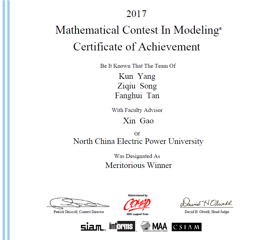 美国老员工数学建模竞赛一等奖