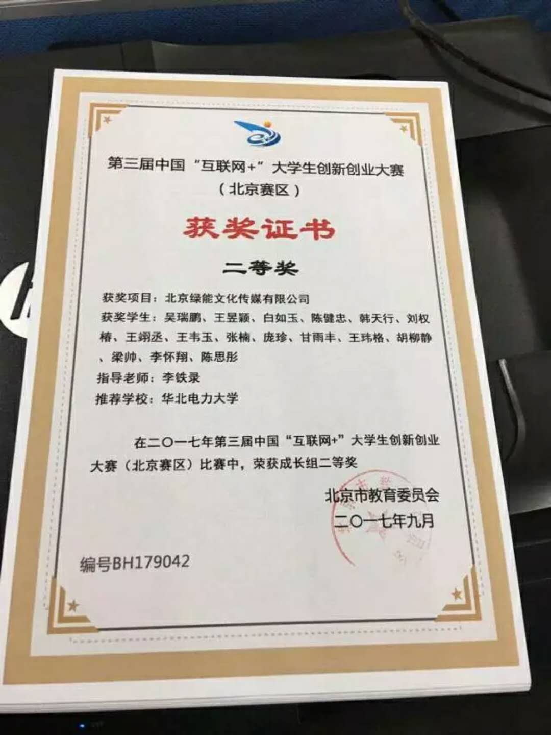 在下半学期与“我i电力”的团队一起参加第三届“互联网+”全国老员工创新创业大赛最后获得校一等奖,北京市二等奖;这样的成果是团队的大家一起努力得到的,进入“我i电力”这个团队我也感觉十分幸运,在前期的采写过程中接触到了许多值得学习的榜样,接触到很多自己所不了解的知识从而对自己有了很大意义上的提高。