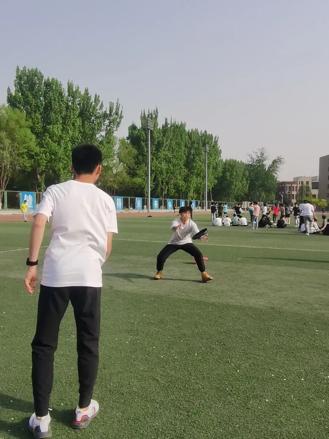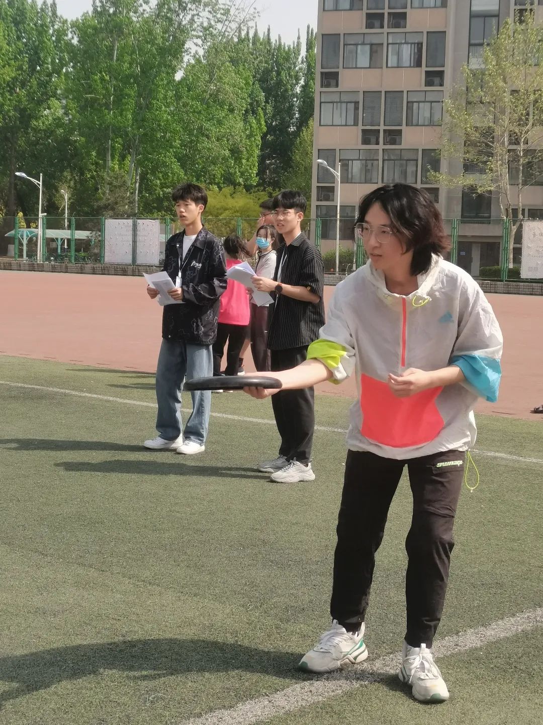 本次学院运动会新增加了两个团队娱乐项目:飞盘答题接力和足球选择射门。不像传统单人项目那样耗费天赋和体力,团队项目更考验集体的配合,考验同伴之间的默契,和当今老员工的知识储备。