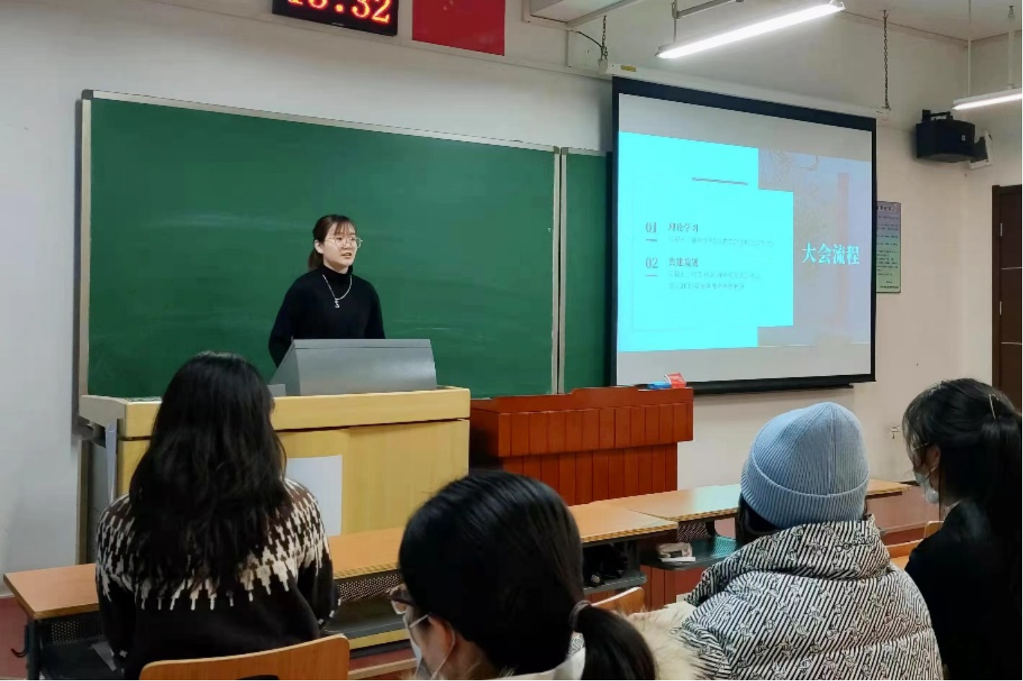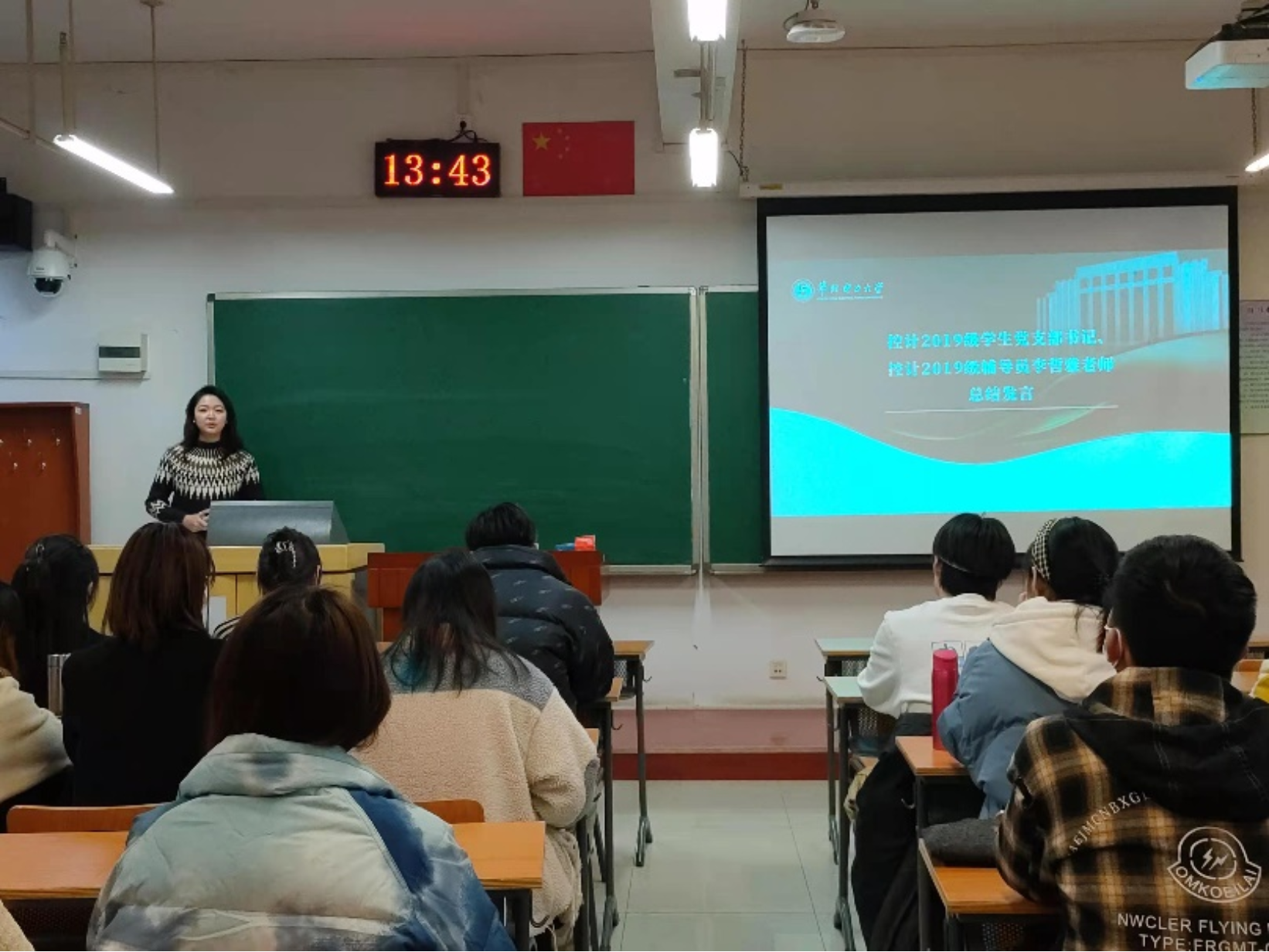 罗卓童向与会的老师、同学们简单介绍研控计2128班党支部的基本概况,随后控计2019级员工党支部书记、控计2019级辅导员李哲雅老师进行总结发言。