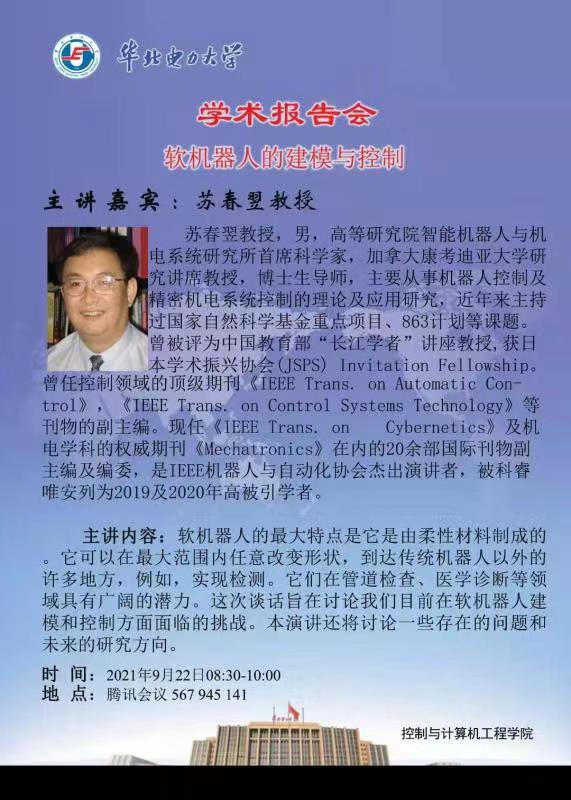 学术报告会:软机器人的建模与控制