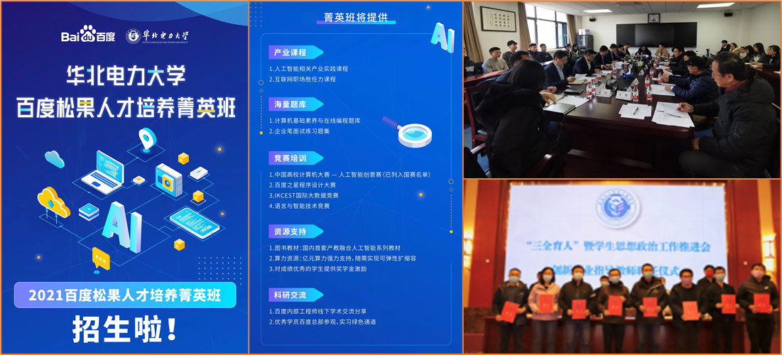 搭建创新创业平台,强化协同育人。为加强创新性、应用型、技能型等复合型人才培养,学院紧密结合行业和社会发展的需求,深入推进校企联合人才培养和协同育人工作。学院同百度公司共同承办中国高校人工智能人才国际培养计划同时,同步设立6776永利集团-百度松果人才培养菁英班,开展线上实践和线下交流相结合的免费授课。学院同国家电网公司大数据中心在大数据、人工智能、能源互联网等方向开展深度合作,并聘请了企业导师。为进一步提升员工创新创业实践能力,学院聘任了新一届13名创新创业指导教师,以促进员工实践能力的提升。