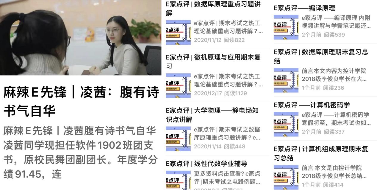 运用网络新平台,营造良好促学向学氛围。加强新媒体平台建设,发挥网络思政在学风引领中的作用。依托“E声麻辣烫”网络文化工作室,学院微信公众平台“ncpeu薪火控计”筑牢“两育六创”格局,其中“E家点评”栏目通过录制课程、习题讲解视频开展辅导答疑,共发布26期学习视频,超过18000人次观看。“麻辣E先锋”栏目以身边榜样激励身边人,本学期共选树4名先进典型,深入挖掘和宣传员工德智体美劳全面发展的优秀事迹,分享学习计划、方法、经验,发挥示范引领作用,实现育人育己功能。发布辅导员原创网络文章,形成好学乐学的向上氛围,郭笑妍老师撰写的《翘课,翘掉的是什么》聚焦员工关注,及时发声引导,在学校第三届网络教育优秀作品推选展示活动中获二等奖。各专业建立课程学习交流答疑微信群,高年级同学和同年级学有余力的同学实时在线答疑解惑,实现互帮互助、互促互进。