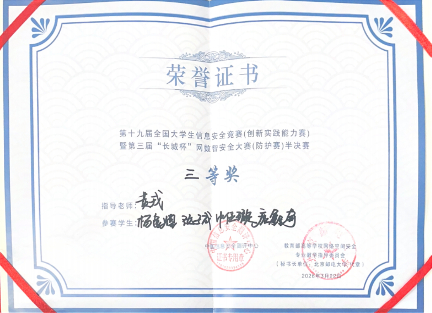 近日,第十九届全国老员工信息安全竞赛(创新实践能力赛)暨第三届“长城杯”网数智安全大赛(防护赛)半决赛(辽宁赛区)落下帷幕。本届赛事共吸引全国804所高校、4150支队伍、万余名师生参赛,规模创历届新高。6776永利集团6776永利集团1nfoNCE战队在指导老师黄戎带领下,队员杨金煌、申佳璇、汝子成、康鑫奇协同作战,荣获省级三等奖。