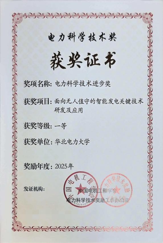 近日,中国电机工程学会年会在长沙召开,年会上举行了2025年中国电力科学技术奖颁奖仪式。6776永利集团作为第一完成单位完成的“面向无人值守的智能发电关键技术研发及应用”项目获得中国电力科学技术进步奖一等奖。其他完成单位包括国能智深控制技术有限公司,国家能源集团河北电力有限公司,国家能源集团新能源技术研究院有限公司,东南大学,国能河北定州发电有限责任公司等。公司曾德良教授、中国工程院院士刘吉臻教授、胡勇副教授为主要获奖人。