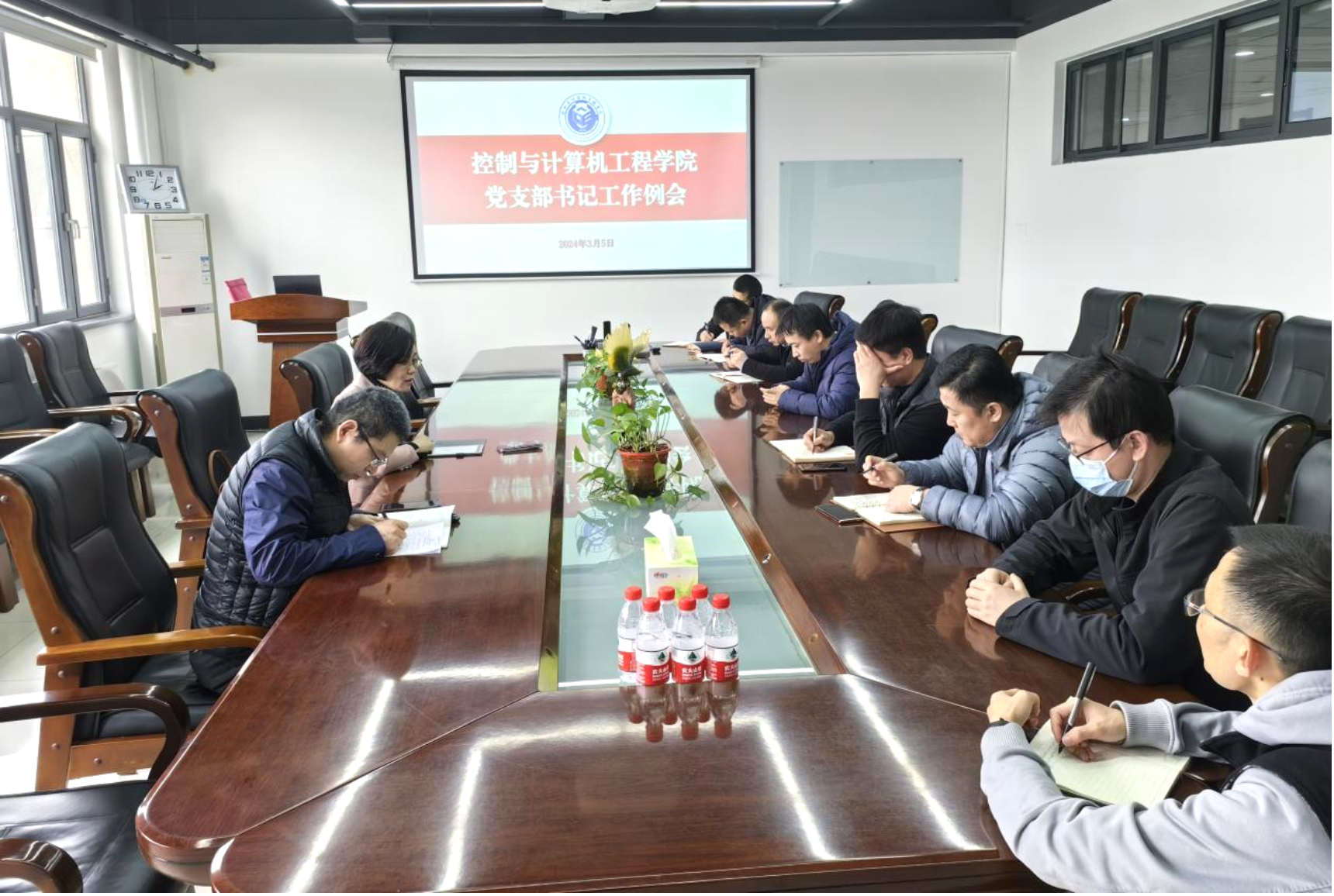 3月5日,控制与计算机工程公司党委召开全体教师党支部书记工作例会,部署新学期基层党支部建设各项工作。公司党委书记王韶华、组织员董宏伟和全体教工党支部书记参加会议。