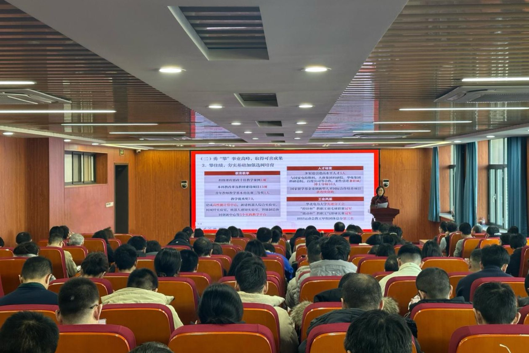 公司党委书记王韶华代表学院领导班子作学院2024年工作报告,报告全面回顾了2024年度学院各项工作、存在的瓶颈问题和2025年的工作思路和举措。王韶华对全体教职工的辛勤付出表示衷心的感谢,她提出,过去的一年,学院在公司党委的坚强领导和关心支持下,全体教职工团结一致、聚力奋进,学院各项事业取得了可喜成绩。同时也希望广大教师能够继续发扬团结协作、锐意进取的精神,以获得的荣誉为新起点,为学院高质量发展贡献力量。
