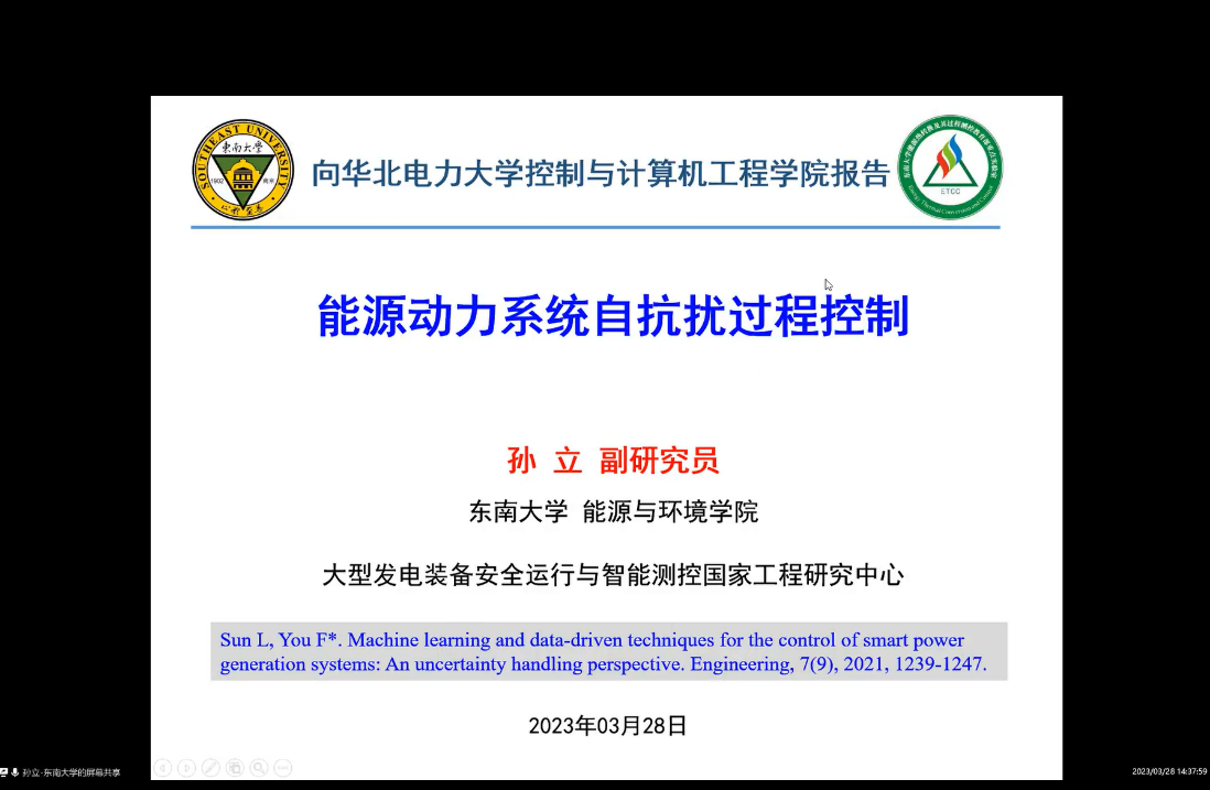 东南大学能源与环境学院孙立副研究员应邀于2023年3月28日下午为控计学院师生作学术报告。讲座由控计学院青年教师马乐乐主持,共150余位师生通过线上或线下渠道聆听了本次报告。