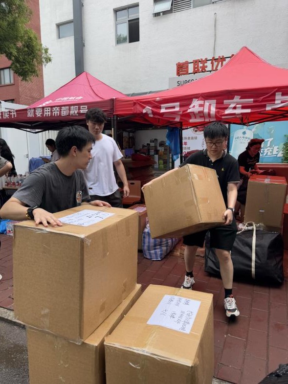 高效协作,灵活应对。7月11日,志愿者们活跃在科研楼各楼门接车点,引导搬家师傅将行李运送至指定寄存教室,负责登记各教室存放行李总件数。志愿者快速处理复杂多变的情况,调度存放和取走的行李,科学规划寄存行李摆放。面对快节奏的工作,志愿者们精神饱满,听从指挥,认真负责,高效完成了当天的行李转运与寄存任务。