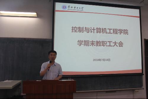 2018年7月18日下午13:00点,控计学院在主E101举行期末教职工大会。全院老师参加会议,大会由刘威书记主持。