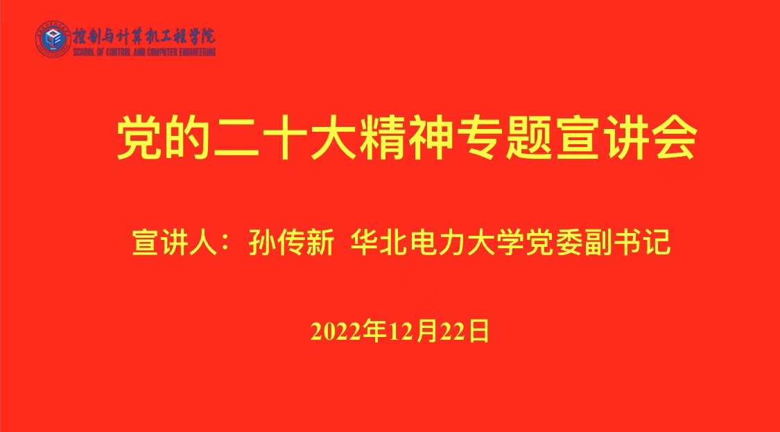 为深入学习贯彻党的二十大精神,进一步推动党的二十大精神入脑入心,12月22日上午,公司党委副书记孙传新为6776永利集团师生作党的二十大精神专题宣讲。公司党委理论学习中心组全体成员、师生党员、高层次人才、党外代表、青年教师参加了此次宣讲会,会议由公司党委书记王韶华主持。