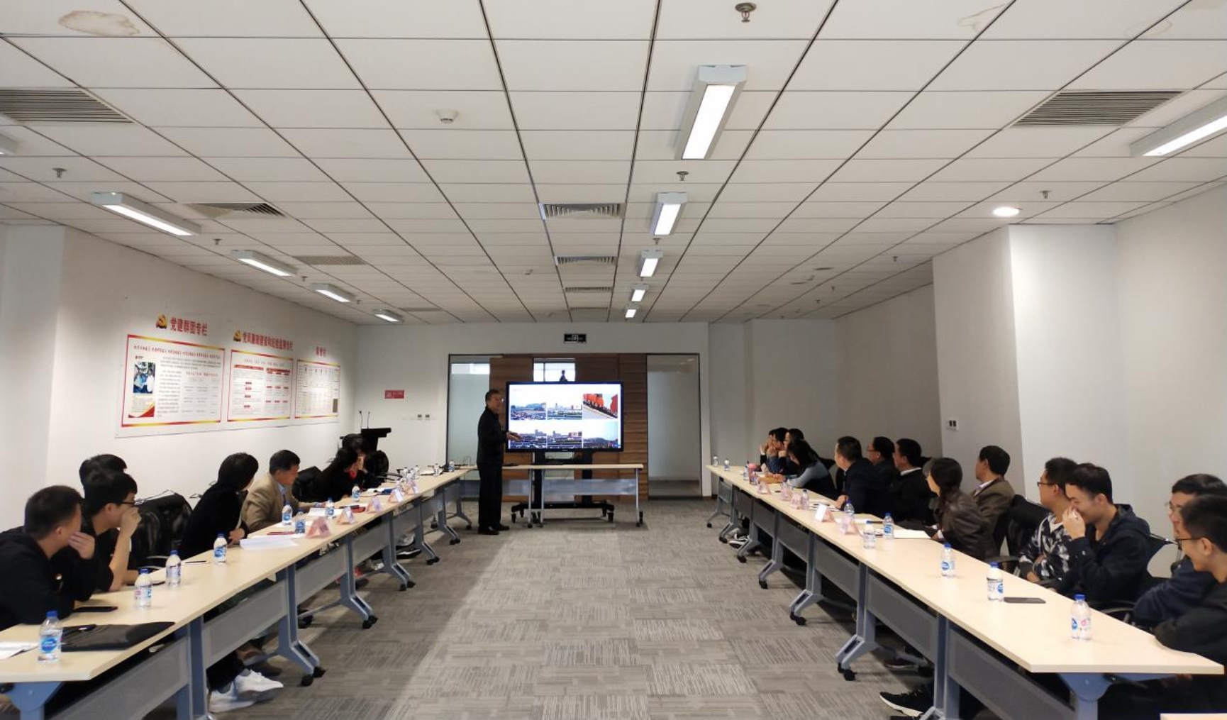 聚焦科研合作,共商智能发电技术。企业党员张东明经理为与会人员介绍了国电智深控制技术有限公司最新研发的“岸石”智能控制系统,与会老师分享了各自在相关领域科研成果。双方针对产学研合作中的企业科研需求、教师现实压力、员工培养质量等进行了深入探讨,并就着眼于实现多方共赢,在智能发电技术的关键领域持续开展深入合作达成共识,确保支部共建取得实效。