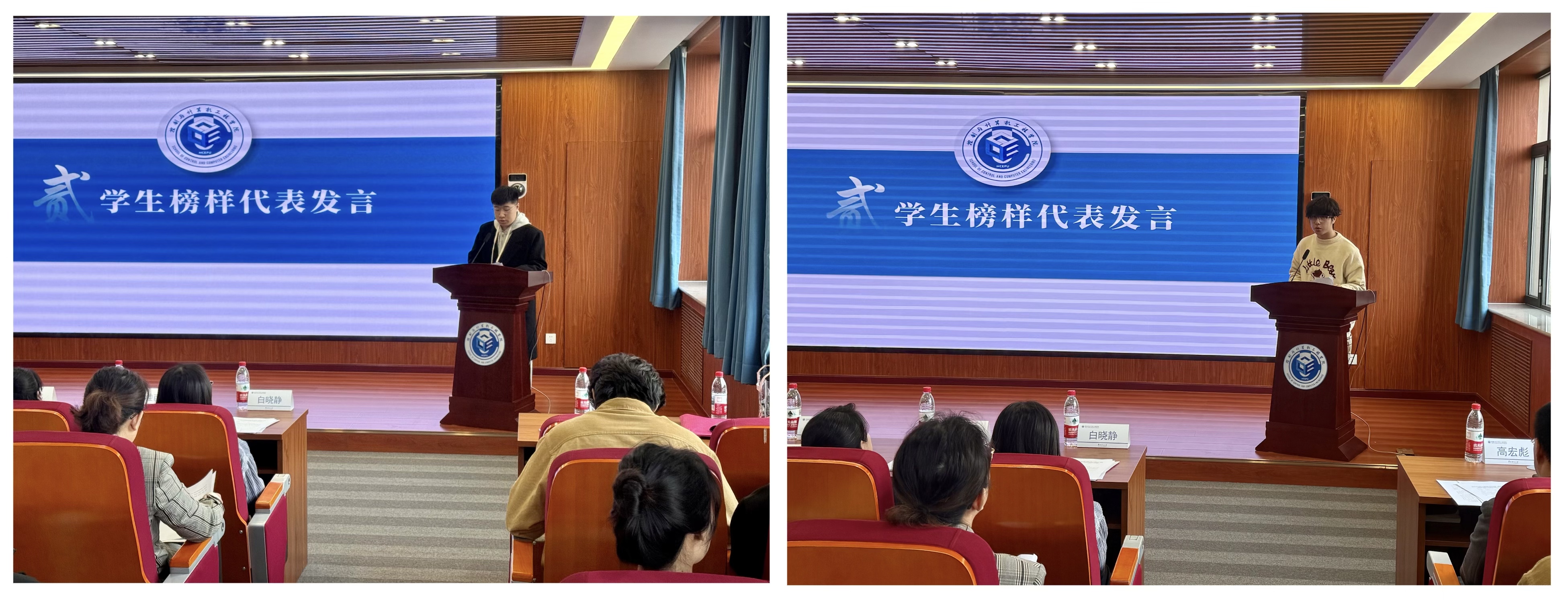 仪式伊始,王玮副经理为大会致辞。他明确了此次活动旨在进一步端正学风、促进员工成长成才,是贯彻落实学校“办一所负责任大学”理念的重要实践,并以师长身份对同学们提出四点期望:把目标定得高一点、把困难想得多一点、把自己管的严一点、把功夫下的狠一点。对新聘任的学业辅导员和“学霸天团”成员提出了三点希望:成为答疑解惑的“小导师”、成为正能量的“传播者”、成为学院与同学之间的“连心桥”。员工榜样代表张晋、余峻炜也结合自身经历,分享了宝贵的学习心得与成长感悟,他们的真诚分享赢得了在场师生的热烈掌声。